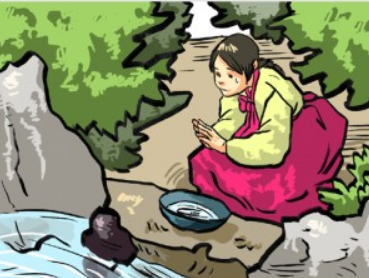 어느 날 샘물 위에 떠 있는 참외를 신령님 분부로 먹었습니다.