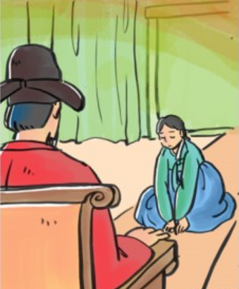 어느 날 그 집에 대궐서 왔다는 장수 및 명이 들이닥쳐 어명이라며 그녀를 궁궐로 데리고 갔다.