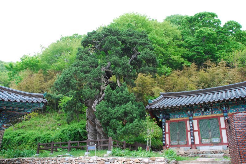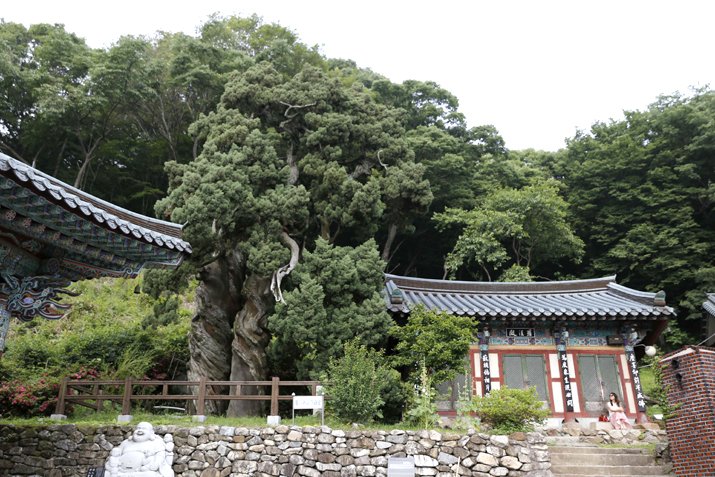 두 그루의 향나무 쌍향수(천연기념물 제88호)가 전설을 지닌채 거목으로 서 있다.