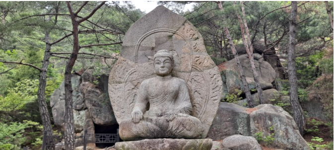 이 부처님들의 후광(後光)은 한발이나 되며 둥굴게 금빛으로 빛나고 그 모습은 단정하기 이를데 없으며