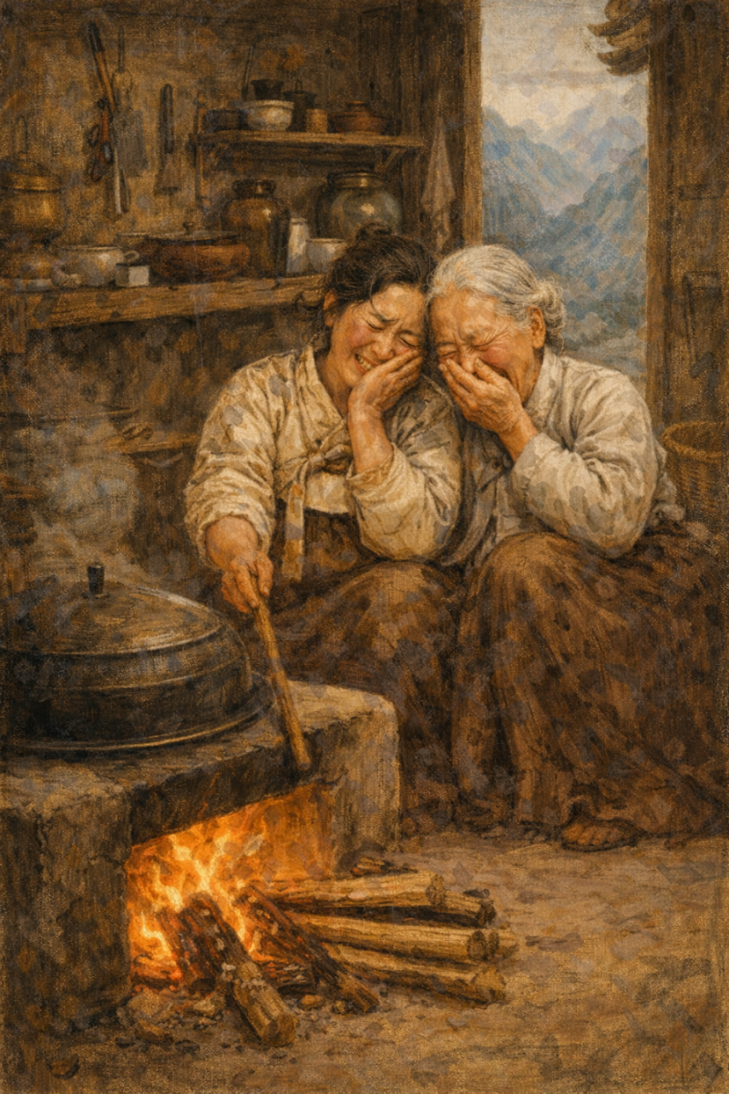할머니 품에서 한참을 안겨 울더니 익숙한 듯 아궁이 불을 뒤적이며