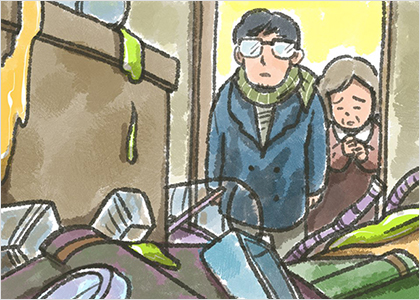 옆에는 과학자의 어머니가 미안한 표정으로 어떻게 해야 할지 모르고 있었습니다.