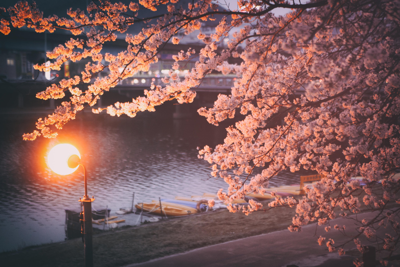 야간 조명에 비친 벚꽃보다 더 찬란히 빛나던