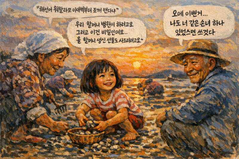 “할머니 나 조개 큰 거 잡았다…. 봐봐..“